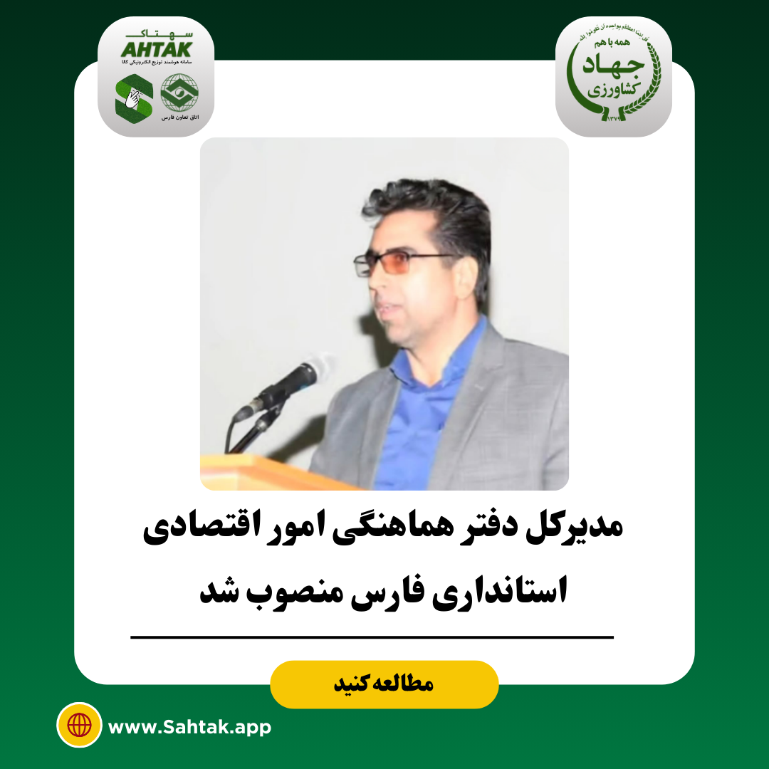 با حکم استاندار فارس؛سرپرست دفتر هماهنگی امور اقتصادی استانداری فارس منصوب شد
