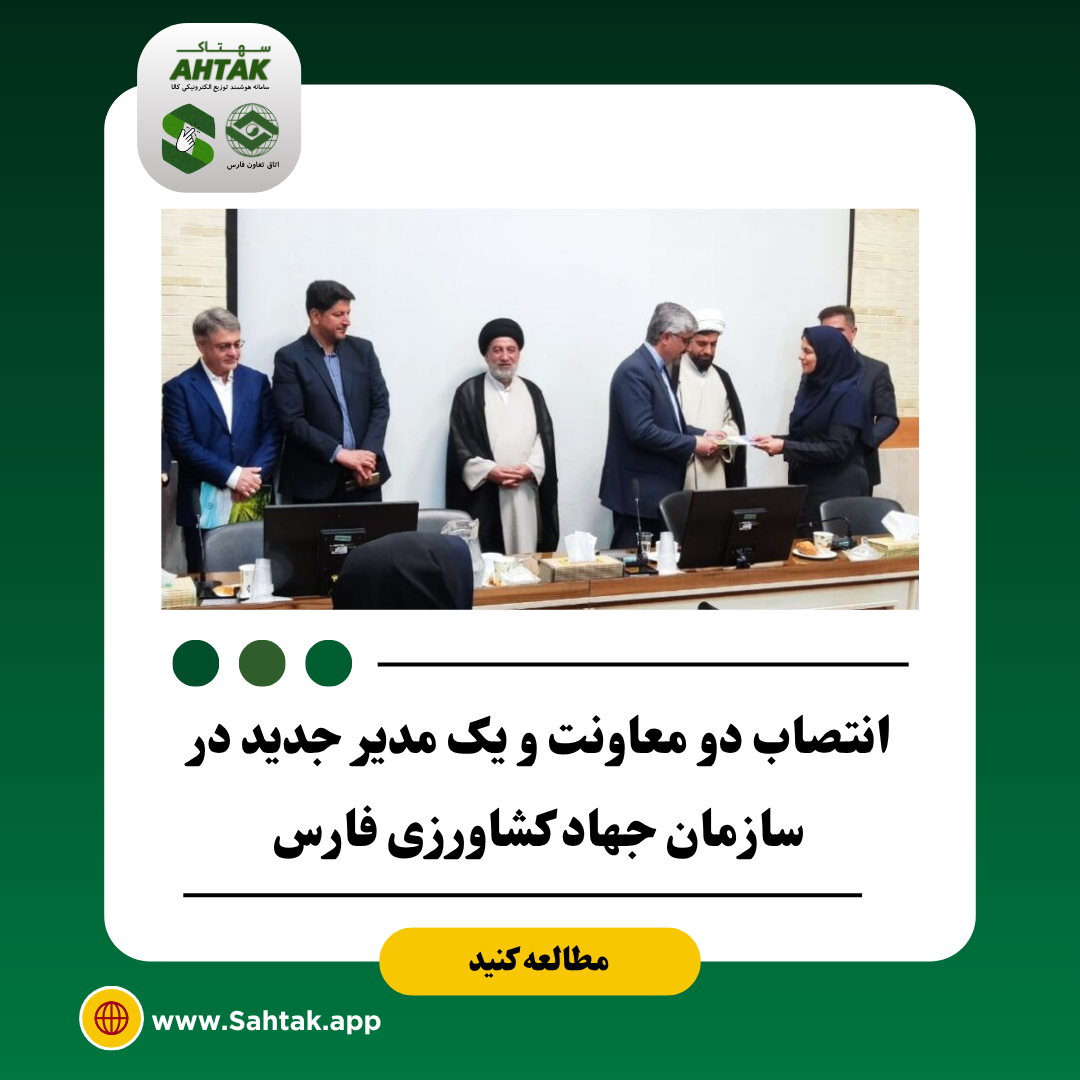 احد بهجت حقیقی، سرپرست سازمان جهاد کشاورزی استان فارس، با صدور احکامی جداگانه، سرپرستان جدید معاونتهای توسعه مدیریت و منابع و تولیدات دامی این سازمان را منصوب کرد.